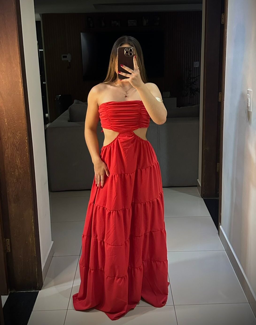 Confeccionado em tecido leve e fluido. A cor vermelha intensa transmite confiança, sofisticação e poder, tornando o modelo ideal para festas, jantares, eventos noturnos ou ocasiões especiais em que se deseja um visual impactante e feminino.
